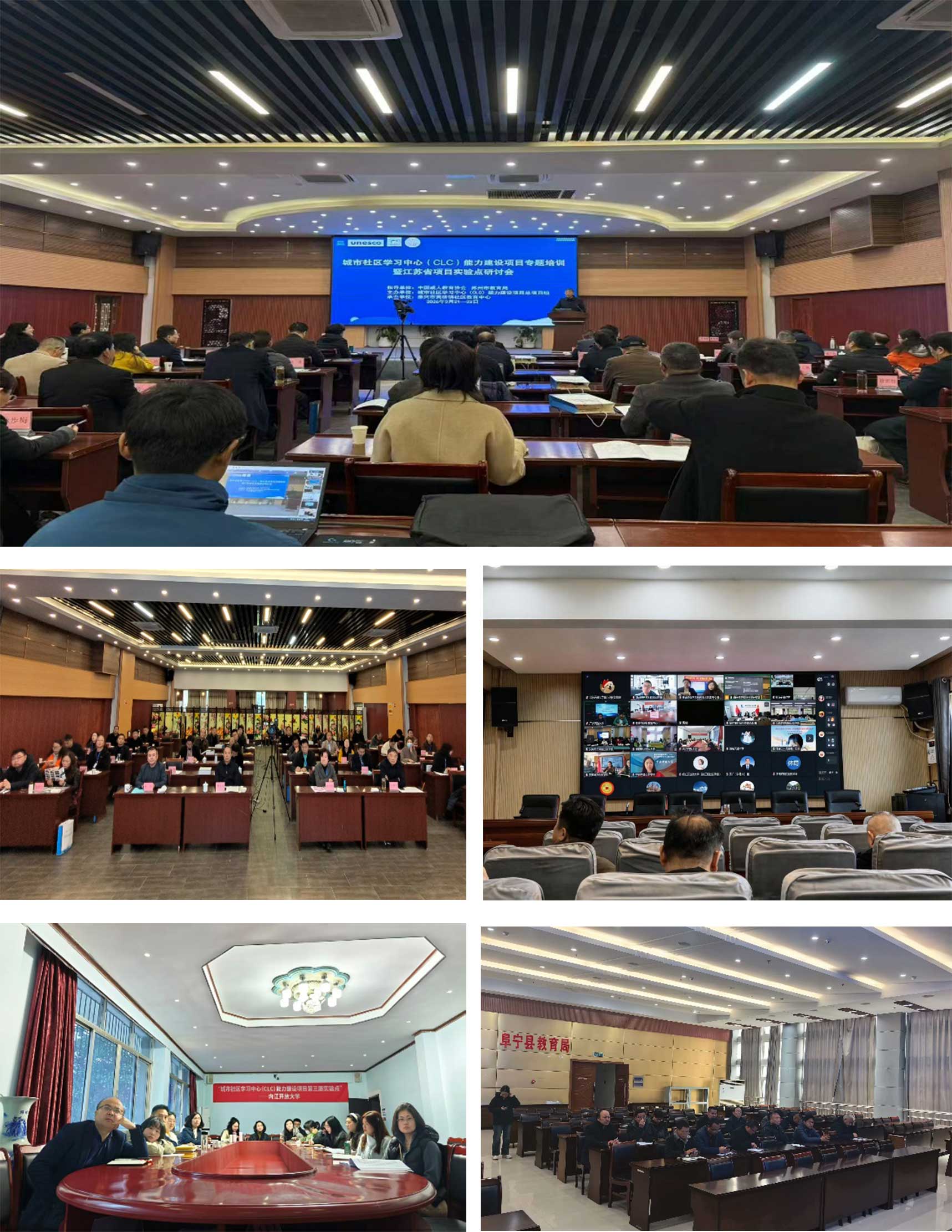 为保证城市社区学习(CLC)能力建设项目第三期项目(“城市CLC第三期项目”)开好头,平稳健康发展,同时为推动城市CLC项目第三期江苏省实验点协同发展, “城市CLC项目”总项目组近日在江苏省泰兴市黄桥镇举办“城市社区学习中心(CLC)能力建设项目专题培训暨江苏省项目实验点研讨会”。中国成人教育协会副会长、城市CLC总项目组组长林金安,中国成人教育协会原副会长、城市CLC总项目组名誉组长包华影,中国成人教育协会副秘书长、城市CLC总项目组执行副组长周延军,江苏省成人教育协会会长、城市CLC总项目组专家组组长孙曙平,江苏省成人教育协会常委副会长、城市CLC总项目组副组长林伟,江苏省教育厅校外培训监管和社会教育处处长殷雅竹,城市CLC总项目组专家组副组长、苏州市语言文字与继续教育处处长徐展,城市CLC总项目组专家组副组长、中国教育科学研究院研究员张竺鹏,泰州学院继续教育学院(开放教育学院)副院长杨爱华及总项目组秘书处同志出席会议。城市CLC第三期项目江苏省实验点代表参加了现场会议,44个实验点设立分会场,通过腾讯会议方式参加会议。
