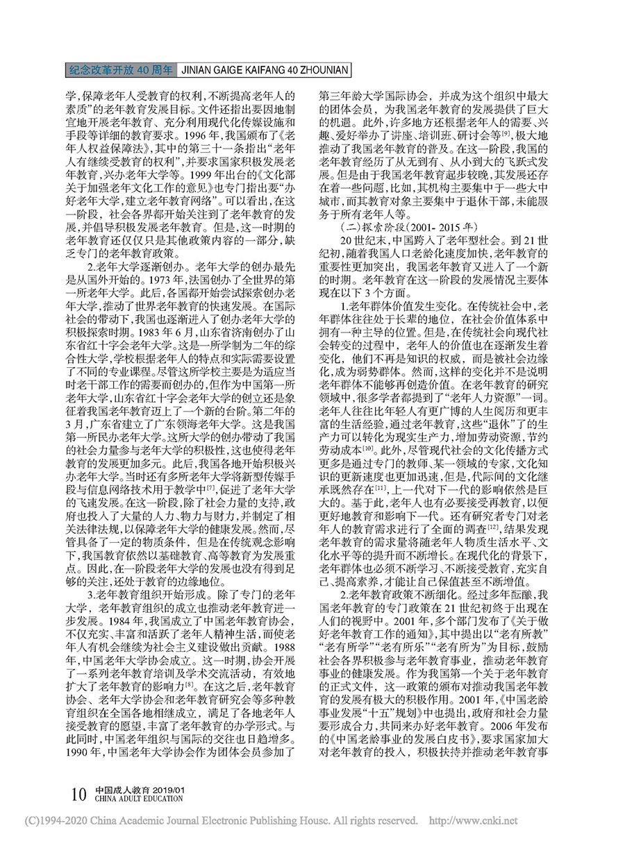 改革开放 40 年我国老年教育的发展历程