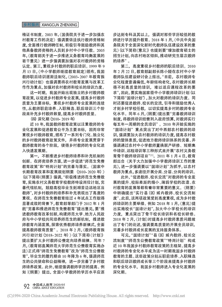 回顾与展望:新中国成立 70 年来乡村教师教育政策变迁