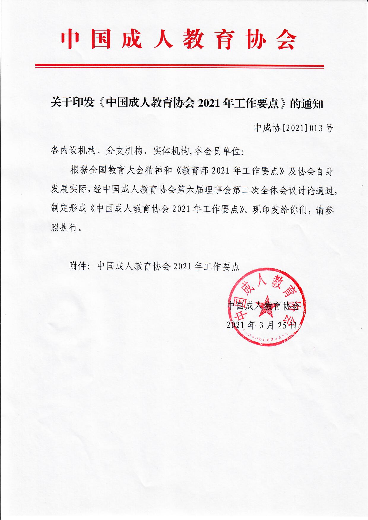 关于印发《中国成人教育协会2021年工作要点》的通知