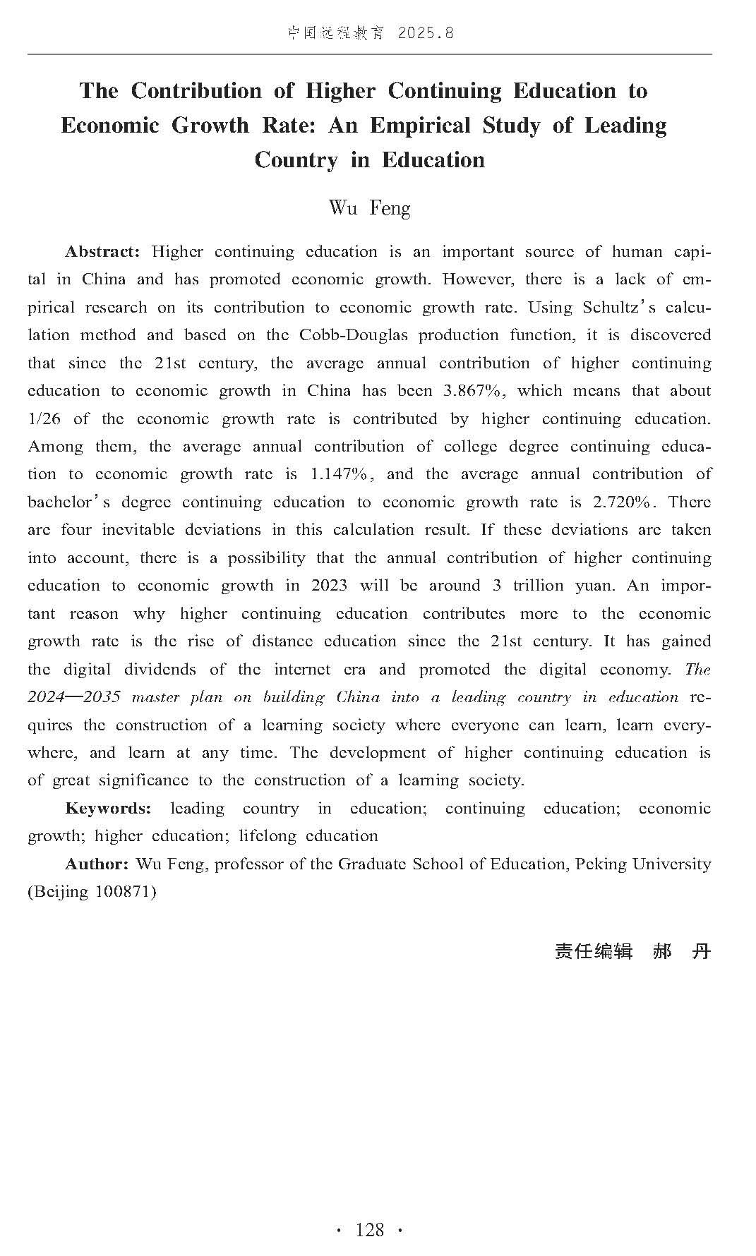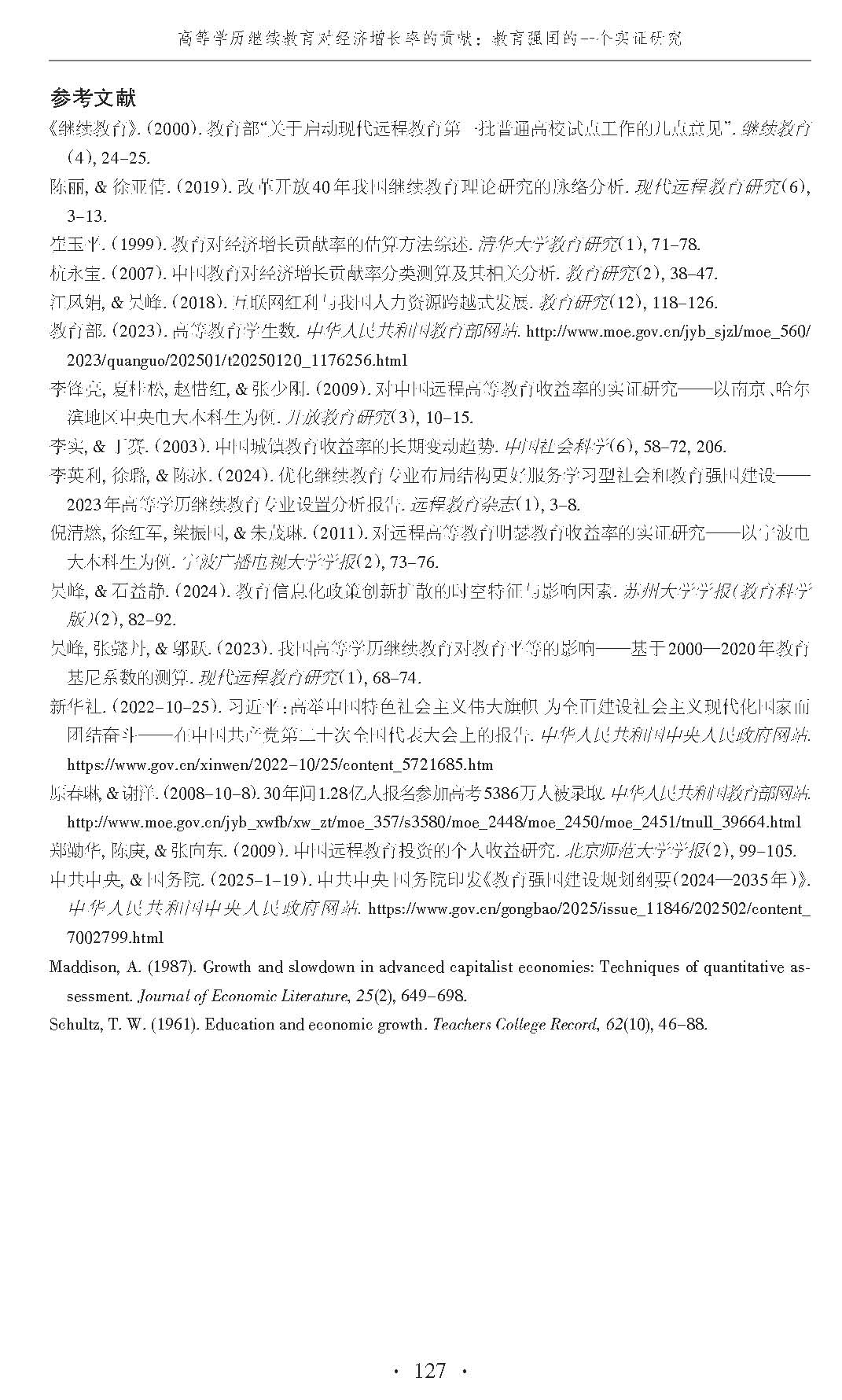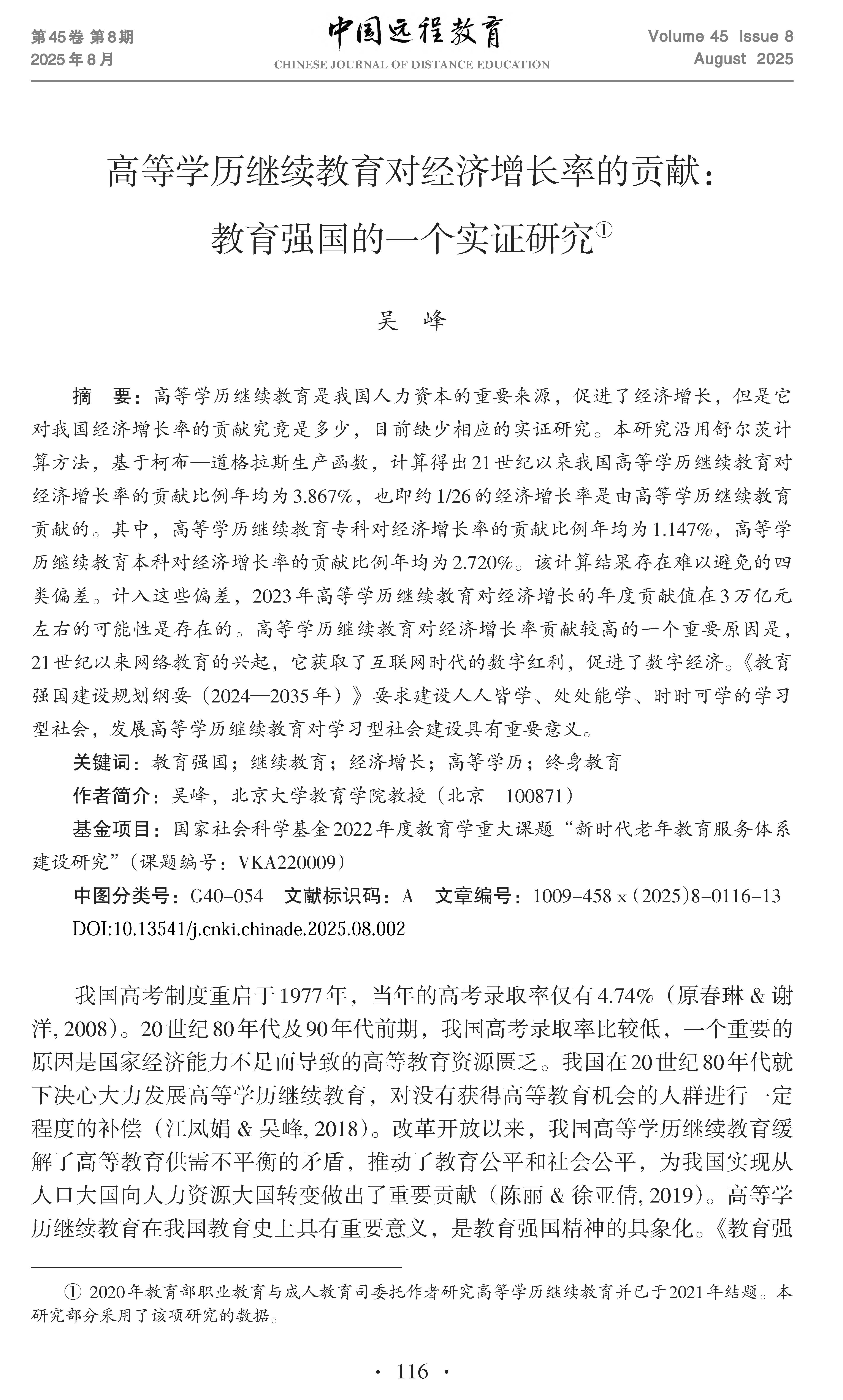 【专家观点】吴峰:高等学历继续教育对经济增长率的贡献:教育强国的一个实证研究