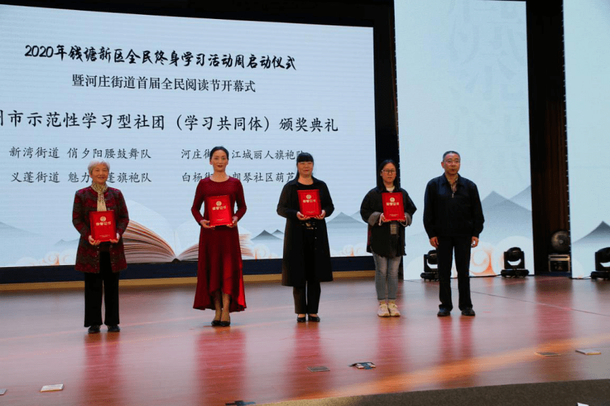 表彰了钱塘新区“百姓学习之星”、钱塘新区示范性学习型社团(学习共同体)、杭州市示范性学习型社团(学习共同体)、钱塘新区标准化市民学校、钱塘新区示范性市民学校,并为杭州市示范街道30分钟市民学习圈(下沙街道)、浙江省现代化成人学校(河庄成校)、浙江省成教品牌项目(临江成校“平安大讲堂”)、杭州市“终身学习品牌项目”(下沙街道滟澜社区“澜知荟共学养老”项目)进行授牌。