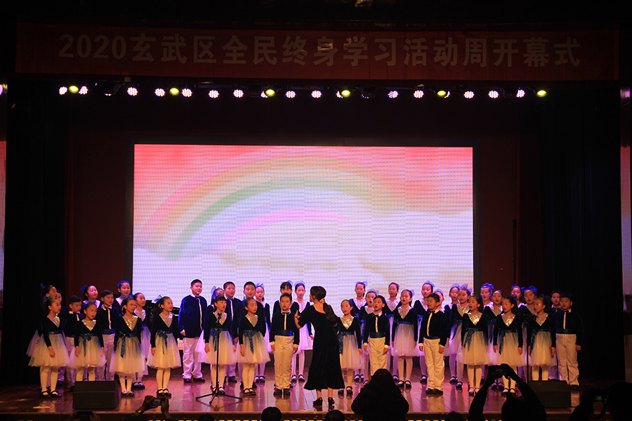 全民学习,终身学习是民族复兴赋予我们的历史使命,是追求民生优质发展的时代呼唤。2020年是一个特殊的年份,新冠病毒席卷而来,在区委、区政府的领导下,在省、市教育主管部门的工作指导下,玄武社区教育按照疫情防控工作常态化的要求,坚持以博学理念为引领,把快乐学习作为快乐生活的一部分,开展了丰富多彩的全民终身学习活动。11月20日下午,玄武区以“以博学理念为引领 用智慧推进玄武学习生态建设”为活动主题,由玄武区社区教育委员会、玄武区教育局主办,玄武开放大学、玄武区社区进修学院承办;南京市玄武中等专业学校、玄武湖街道社区教育中心、江苏“3D社区教育发展合作联盟”协办的玄武区“2020年全民终身学习活动周开幕式”在南京市玄武中等专业学校隆重举行。参加活动的领导和来宾有江苏省成人教育协会会长孙曙平,玄武区委常委、宣传部部长施扬,南京开放大学副校长张煌,玄武区委宣传部副部长韩春云、玄武区教育局二级调研员戴继根、中山陵园管理局宣教处处长杨斌,南京市教育局职社处宋冬梅科长以及玄武区各街道党工委副书记、社区教育中心主任及受表彰的居民代表、玄武开放大学、玄武中等专业学校、南京市逸仙小学师生代表约200余人参加了该活动。