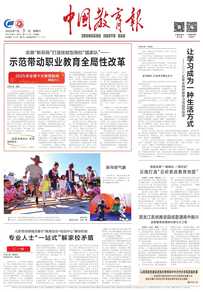 《中国教育报》2026年01月03日 第01版 版名:要闻