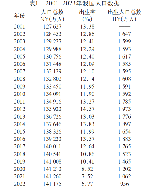 学龄人口是指新增人口中应进入就学年龄的人口[11],结合已有研究成果和《中国教育监测与评价统计指标体系(2020年版)》[12][13],本文将18~22岁的人口作为高等教育学龄人口。在不考虑国际迁移的影响下,本文用于计算学龄人口的指标包括全国人口数、出生率,数据来自《中国统计年鉴2023》。