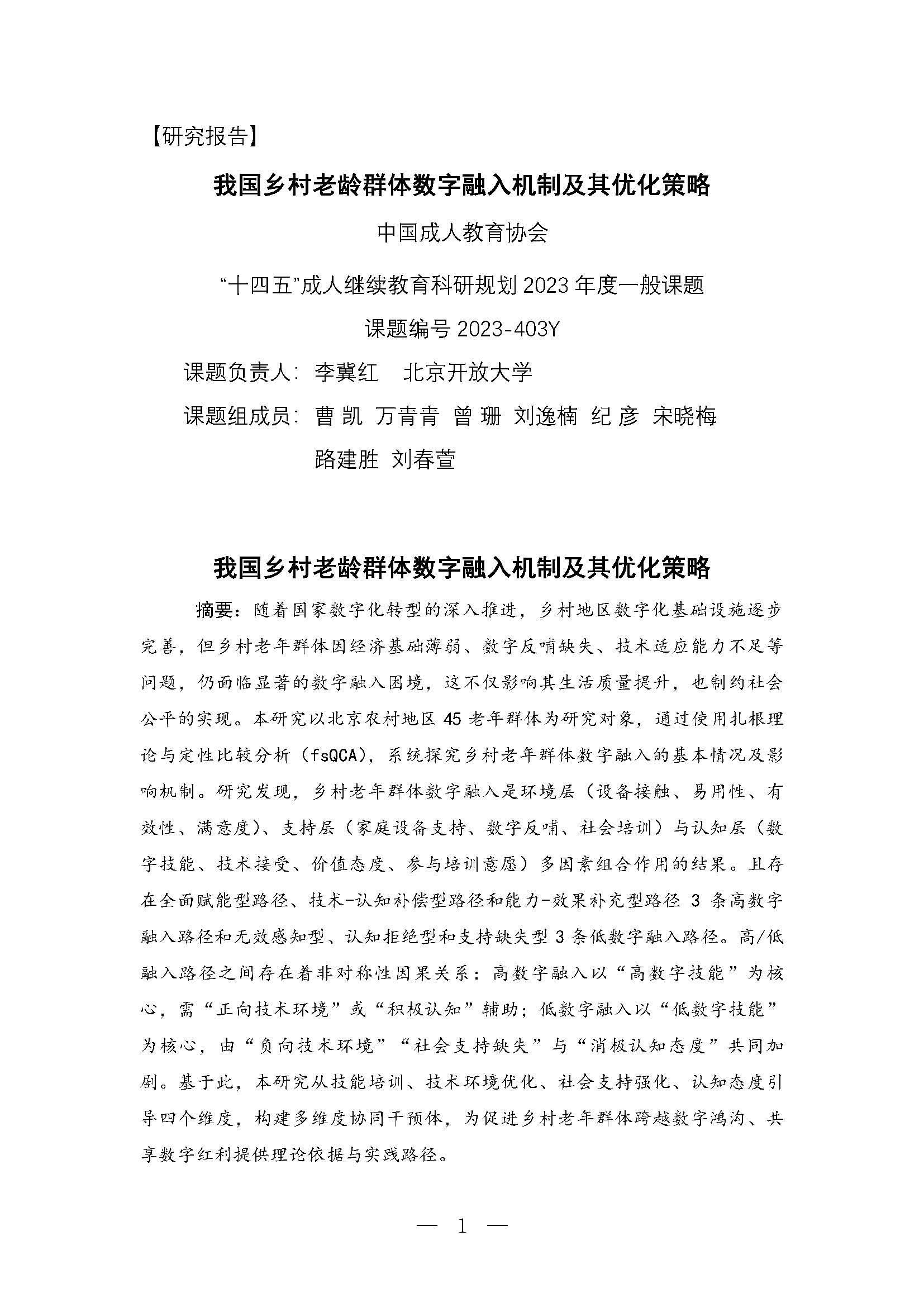 【研究报告】我国乡村老龄群体数字融入机制及其优化策略