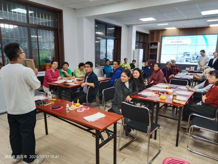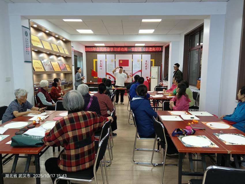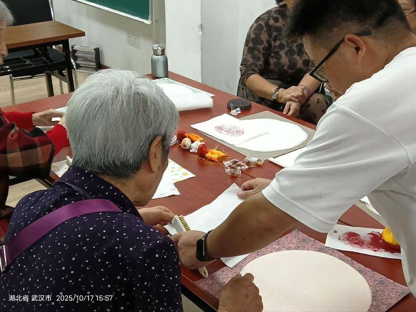 湖北日报客户端讯(通讯员望嘉益)10月17日下午,伴随2025年全民终身学习活动周的热潮,武汉市硚口区汉水桥街道海工社区精心打造的“一节好课”——老年课堂非遗手工拓印课顺利收官,三十位社区老人齐聚一堂,在指尖与传统的碰撞中,解锁了非遗文化的新体验。