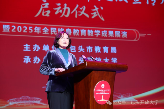 内蒙古开放大学党委副书记马桂英在启动仪式上致辞表示全民终身教育活动的广泛开展,对于打造学习型城市具有至关重要的意义。只有不断学习、终身学习,我们才能紧跟时代发展的脉搏,适应社会变革的需求。希望包头开放大学继续发挥区位优势,与内蒙古开放大学形成“上下联动、资源共享”的发展格局,要积极对接国家智慧教育平台终身教育板块,借鉴全区社区老年教学点的成功经验,推动优质数字资源向企业、社区、乡村延伸,让不同群体都能享受到“随时可学、随处能学”的教育服务。
